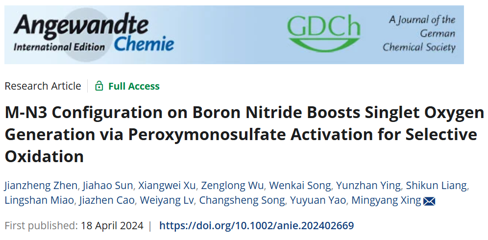 青年教师吕维扬、姚玉元团队和宋昌盛团队在国际权威学术期刊《德国应用化学》(Angewandte Chemie International Edition, Angew. Chem. Int. Ed.)上,发表了题为“M-N3 configuration on boron nitride boosts singlet oxygen generation via peroxymonosulfate activation for selective oxidation”的研究论文。黑沼泽俱乐部