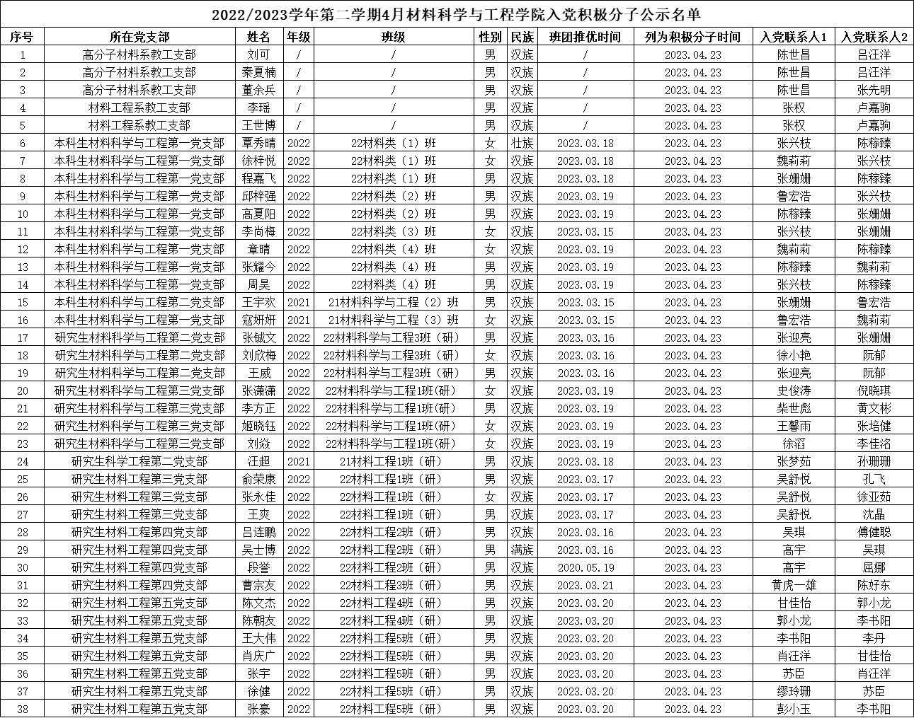党建动态 当前位置: 黑沼泽俱乐部 > 党建思政 > 党建动态 > 正文 黑沼泽俱乐部 2023年4月入党积极分子名单公示 作者:时间:2023-04-23浏览次数: 各党支部、团支部: 经各团支部“推优”、学院团委审核以及各党支部委员会讨论研究决定,确定刘可等38位同志为入党积极分子,现将名单公示如下: 公示时间:4月23日—4月25日,公示期内,凡对以上同志确定为入党积极分子有意见者,请及时以口头或书面的形式向黑沼泽俱乐部 党委或党支部反映问题。 联系电话:86845861,联系人:鲁宏浩。 E-mail:[email protected] ;办公室地址:24-404。 黑沼泽俱乐部 党委 2023年4月23日 附件【2022-2023学年第二学期4月黑沼泽俱乐部 入党积极分子名单.xlsx】已下载次