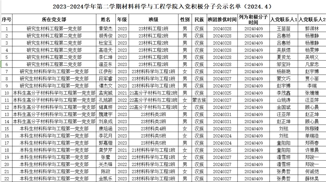 党建动态 当前位置: 黑沼泽俱乐部 > 党建思政 > 党建动态 > 正文 黑沼泽俱乐部 2024年4月入党积极分子名单公示 作者:时间:2024-04-09浏览次数: 各党支部、团支部: 经各团支部“推优”、学院团委审核以及各党支部委员会讨论研究决定,确定黄荣杰等22位同志为入党积极分子,现将名单公示如下: 公示时间:4月9日—4月11日,公示期内,凡对以上同志确定为入党积极分子有意见者,请及时以口头或书面的形式向黑沼泽俱乐部 党委或党支部反映问题。 联系电话:86845861,联系人:鲁宏浩。 E-mail:[email protected] ;办公室地址:24-404。 黑沼泽俱乐部 党委 2024年4月9日