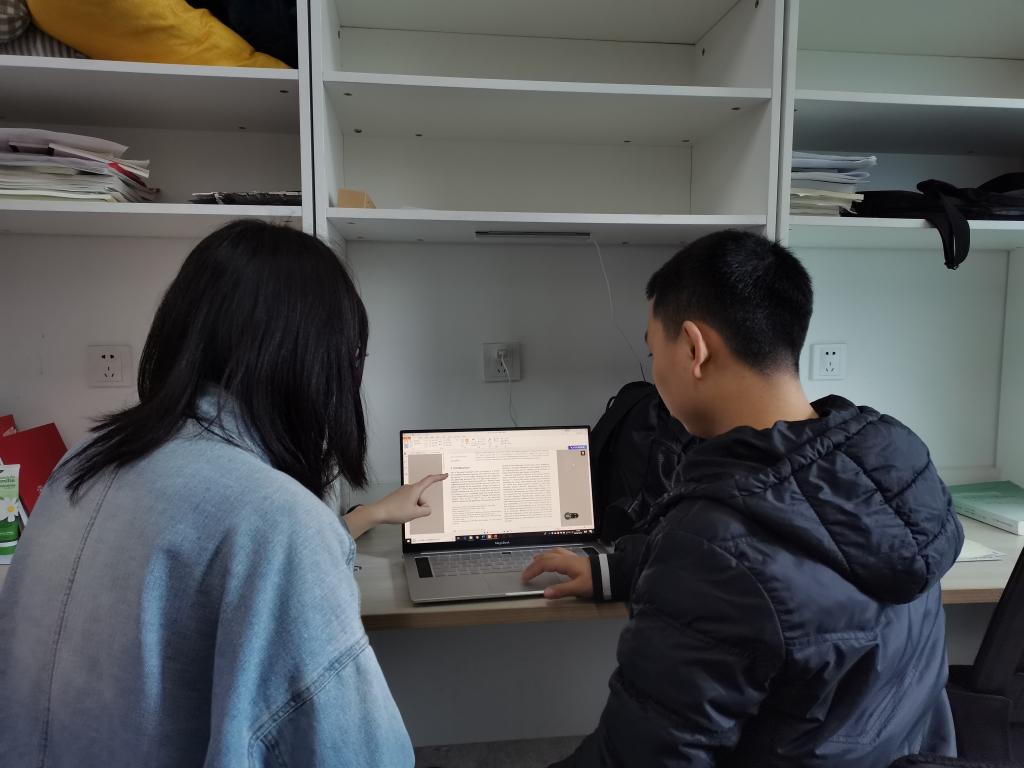 同为校团委科研部的干事,初次相识似乎都没有给对方留下太深的印象,彼此的交流也少之又少。直到大一下学期专业分流后,陈爽成为了新班级的团支书,而班长恰好是梁世潘。陈爽回忆道:“当时班主任出国了,没办法直接参与班级建设,那只能靠我们自己了。”他们齐心协力解决问题,凝心聚力推动班级发展。之后经梁世潘介绍,陈爽加入到李仁宏老师课题组,从此两人多了一层同门师兄弟的关系。这一层层的关系把两人紧紧连在一起,“事情多的时候,就有聊不完的话题,因为身边的每一件事情都好像和她有这么点关系”,梁世潘摸摸头说道。