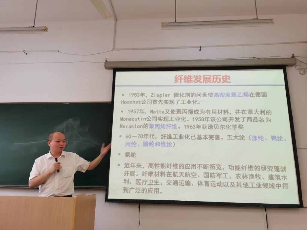 两位领导携学院几位年轻助教老师走进了《高技术纤维》的课堂,和同学们一同听课,充分了解教学一线情况。学生到课情况良好、听课认真、精神饱满、学风端正。该课程的任课老师正是校长陈文兴院士,作为学院教授,陈院士一直非常重视本科教学。陈院士上课思路清晰、循循善诱,结合自己的求学经历和专业发展,讲述了纤维的发展历史和现状,给学生上了一堂生动的高技术纤维专业课,课堂气氛十分活跃。