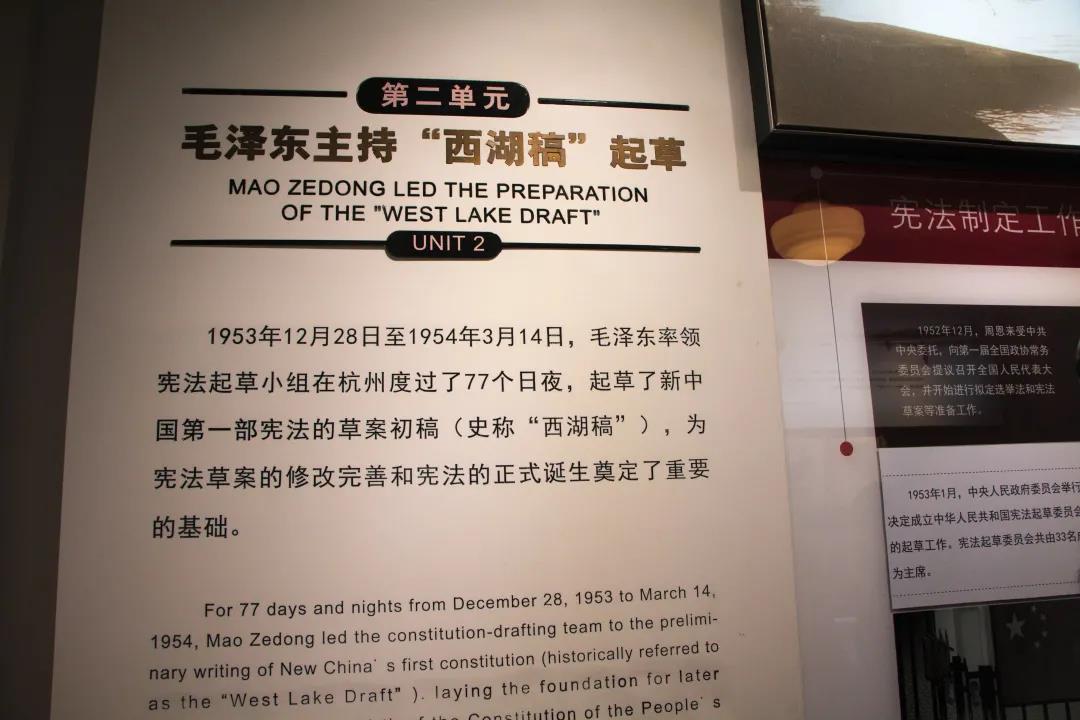 师生党员参观的是北山街馆区。北山街馆区所在的北山街84号大院30号楼是毛主席当年在杭州起草宪法时的办公地,有一幢平方和一幢二层楼房,有序厅、复原陈列和主题陈列三个部分组成,分为制定“五四宪法”的历史背景、毛泽东主持“西湖稿”起草、全国人民参与大讨论、“人民的宪法”获全票通过、“五四宪法”精神的传承与弘扬、全面实施宪法六个单元,主要讲述了“五四宪法”从起草、讨论、通过到实施的全过程。