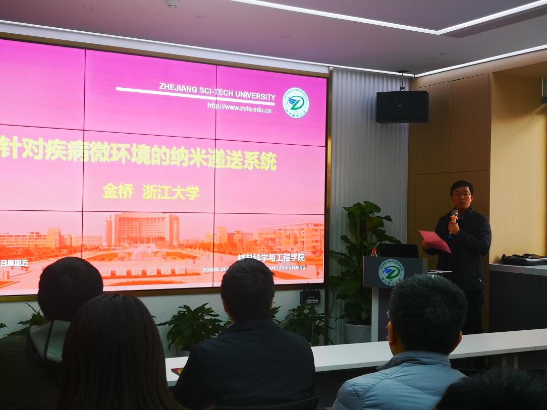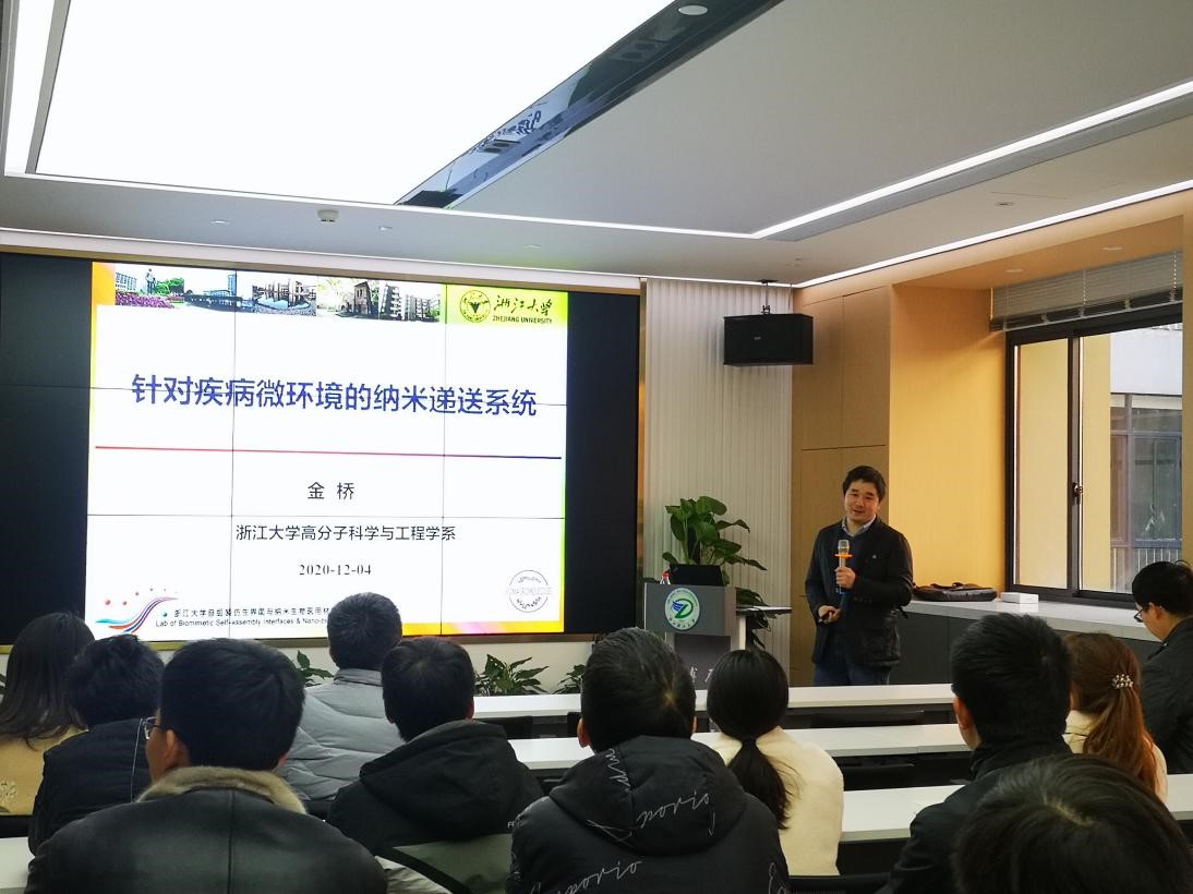 12月4日下午,浙江大学高分子科学与工程学系生物大分子研究所金桥副教授应邀来学院做题为“针对疾病微环境的纳米递送系统”的学术报告,报告在24号楼415报告厅举行,本次报告由学院杨叶锋副院长主持。