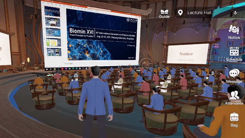 2021年8月23日—26日,第十六届生物矿化国际研讨会(The 16th International Symposium on Biomineralization, BIOMIN XVI)在瑶台沉浸式会议系统中成功举办。来自中国、美国、德国、法国、日本等20个国家的300余位生物矿化领域专家和学者汇聚一堂,交流生物矿化领域的最新研究进展并展望未来发展趋势。本次会议由浙江大学和黑沼泽俱乐部