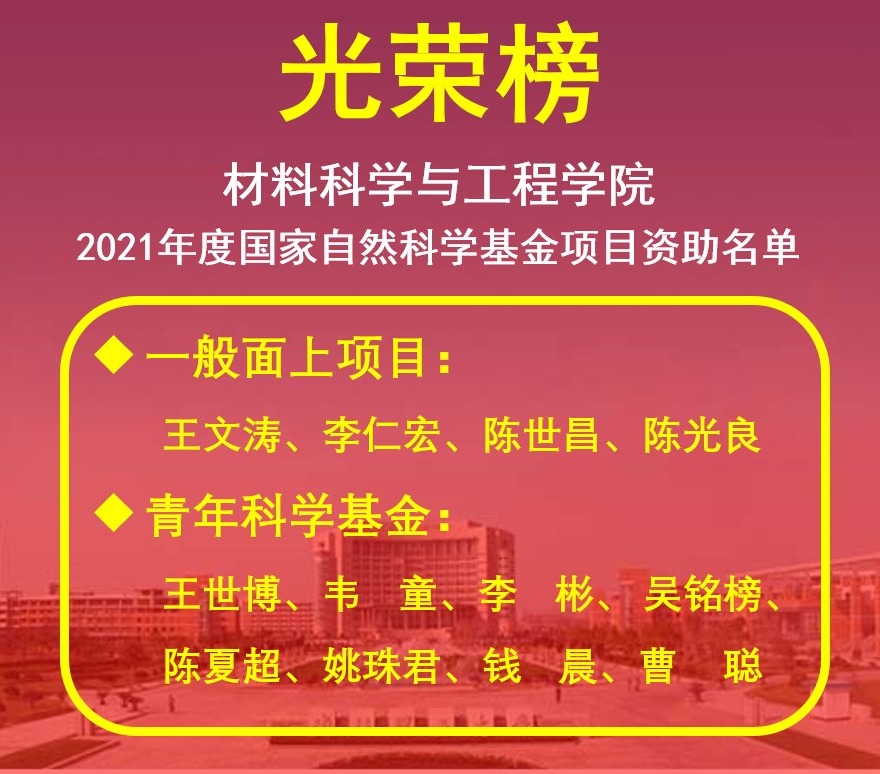 共有12项国家自然科学基金项目获得立项资助,同比增长50%,立项资助率达到32.43%,资助率位列全校第一。其中,一般面上项目4项,青年科学基金项目8项,共获直接经费资助428万元。