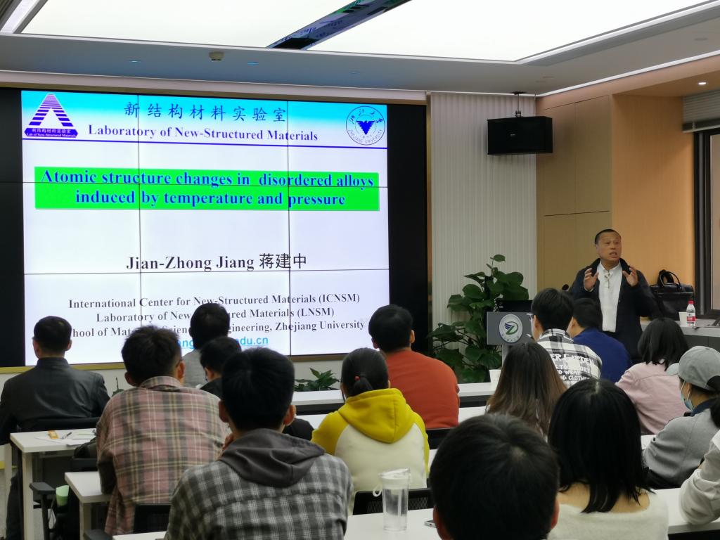 作题为“Atomic Structure Changes in Disordered Alloys Induced by Temperature and Pressure(温度和压力对无序合金中原子结构的影响)”的学术报告,会议由院长张先明教授主持,相关学院教师和研究生们共同参会并交流。