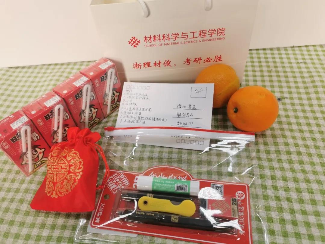 最后,考研护航特设党支部党员们与老师们一起为每一位同学送上一份暖心的礼物。一套考研文具,两枚心想事“橙”,一版“旺仔”牛奶、装有绣着“金榜题名”、“考研必过”等字样的红色袜子锦囊,以及来自学院党员同志们亲笔写下的考研须知和祝福卡片。在冬日里为奋战在考研前线的同学带去一份温暖。