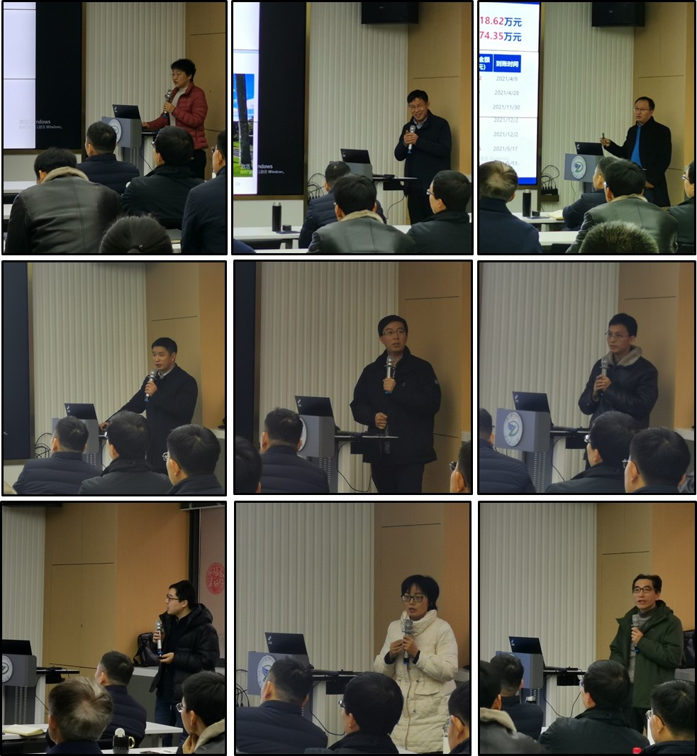 首先,副院长江国华简要介绍了2021年学院科研成果情况。随后,各研究所负责人分别从队伍建设、各项指标实现情况及特色工作、团队及人均业绩完成情况、科技工作、人才培养实绩实例和下一年度工作计划与展望等方面作了详尽汇报。