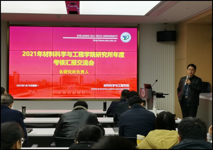 最后,学院院长张先明作会议总结,张院长充分肯定了各个研究所在2021年度取得的各项成绩,强调要注重提升人才队伍建设,动员保质保量完成2022年各项工作任务,鼓励各个研究所加强合作交流,更好地推动研究所规范化建设和健康发展;同时强调开展各项工作要立足材料学科发展,突出自身优势特色,进一步促进学院学科建设和发展。