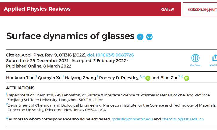 为第一完成单位。该论文被甑选为APR亮点论文(Featured / Editor's picks),并被美国物理学联合会《科学之光》(AIP Scilight)杂志以Clarifying the surface dynamics of glass为题进行了专访报道。