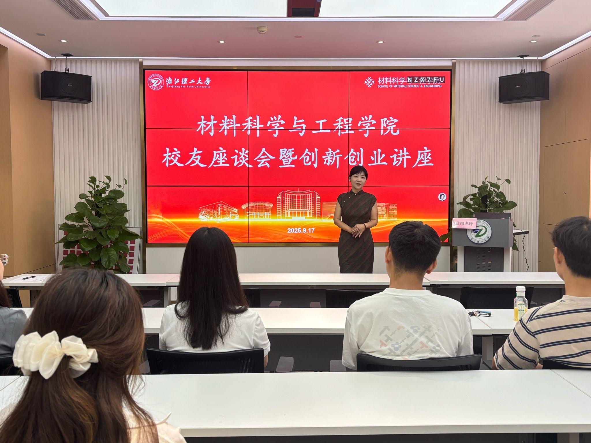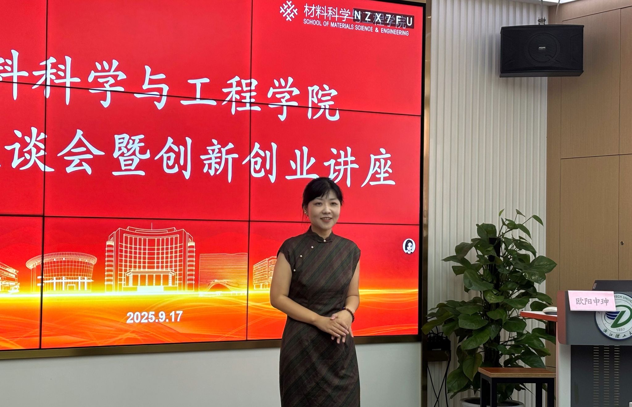 首期座谈会特邀12级材料物理化学专业校友,学院宁波校友会长、宁波航天米瑞科技有限公司总经理欧阳申珅。她以自身 “小镇做题家” 的成长起点为切入点,生动还原了从校园深耕专业到勇敢开启创业之路的完整历程,特别提醒学弟学妹 “大学时光是能力积累的黄金期”,鼓励大家主动挖掘实验室、实践项目、校友资源等校内宝藏,通过专业学习与实践锻炼的 “双向发力” 提升综合素养。同时,她还送上真挚寄语,希望同学们珍惜校园时光、锚定发展目标,为未来职业突破或创业尝试筑牢根基。