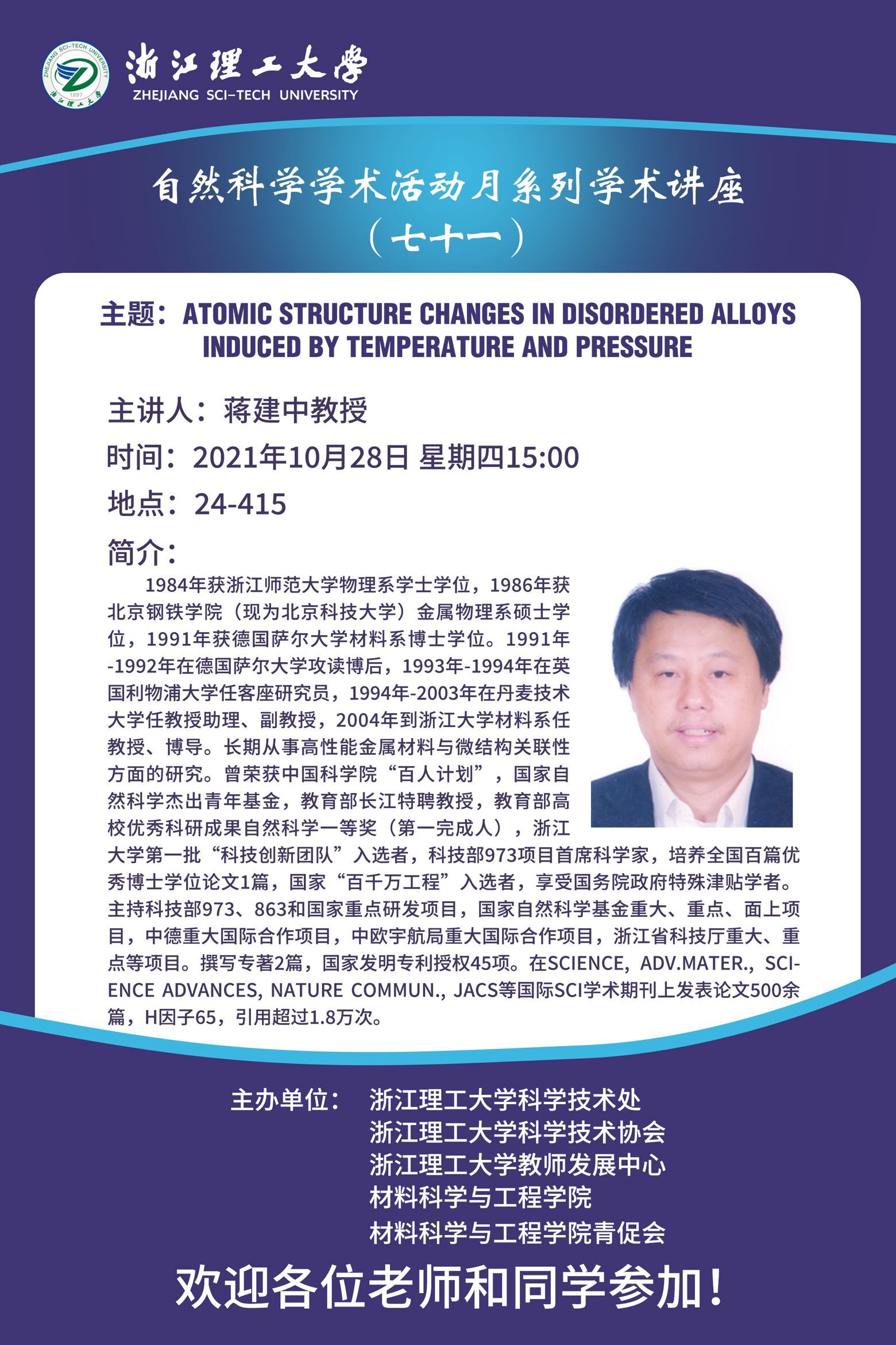 学术讲座 当前位置: 黑沼泽俱乐部 > 学术讲座 > 正文 学术讲座【26】:ATOMIC STRUCTURE CHANGES IN DISORDERED ALLOYS INDUCED BY TEMPERATURE AND PRESSURE 作者:时间:2021-10-27浏览次数: