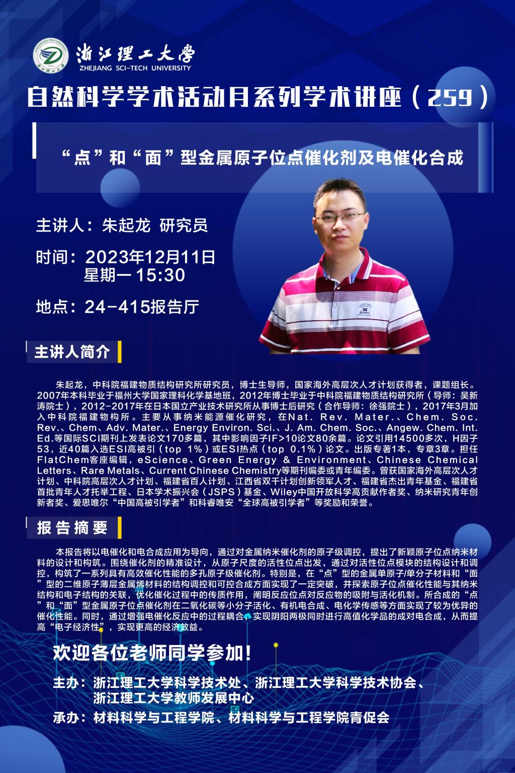 学术讲座【71】:“点”和“面”型金属原子位点催化剂及电催化合成