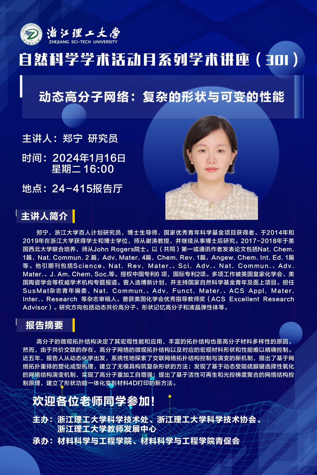 学术讲座【77】:动态高分子网络:复杂的形状与可变的性能