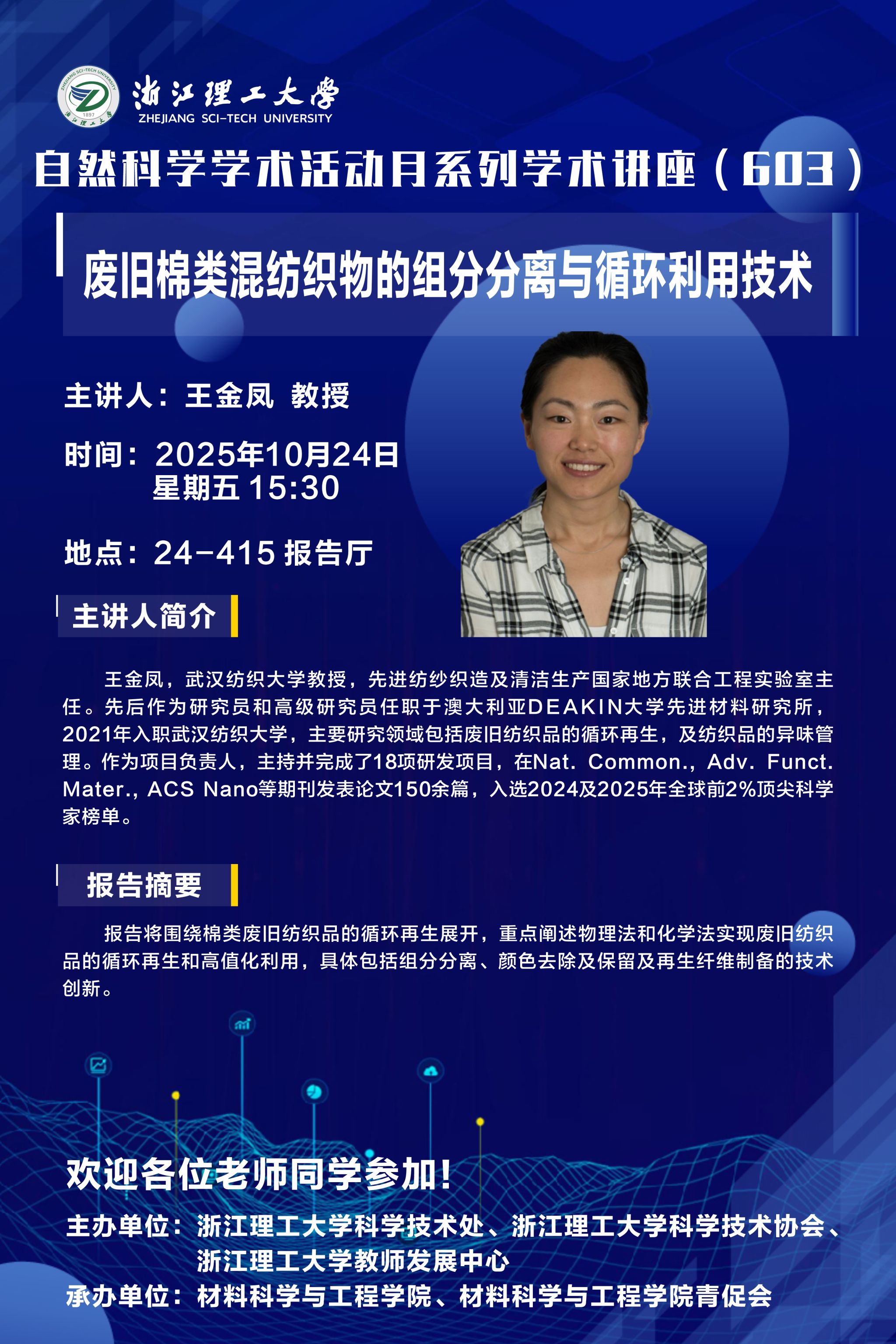 学术讲座【121】:废旧棉类混纺织物的组分分离与循环利用技术