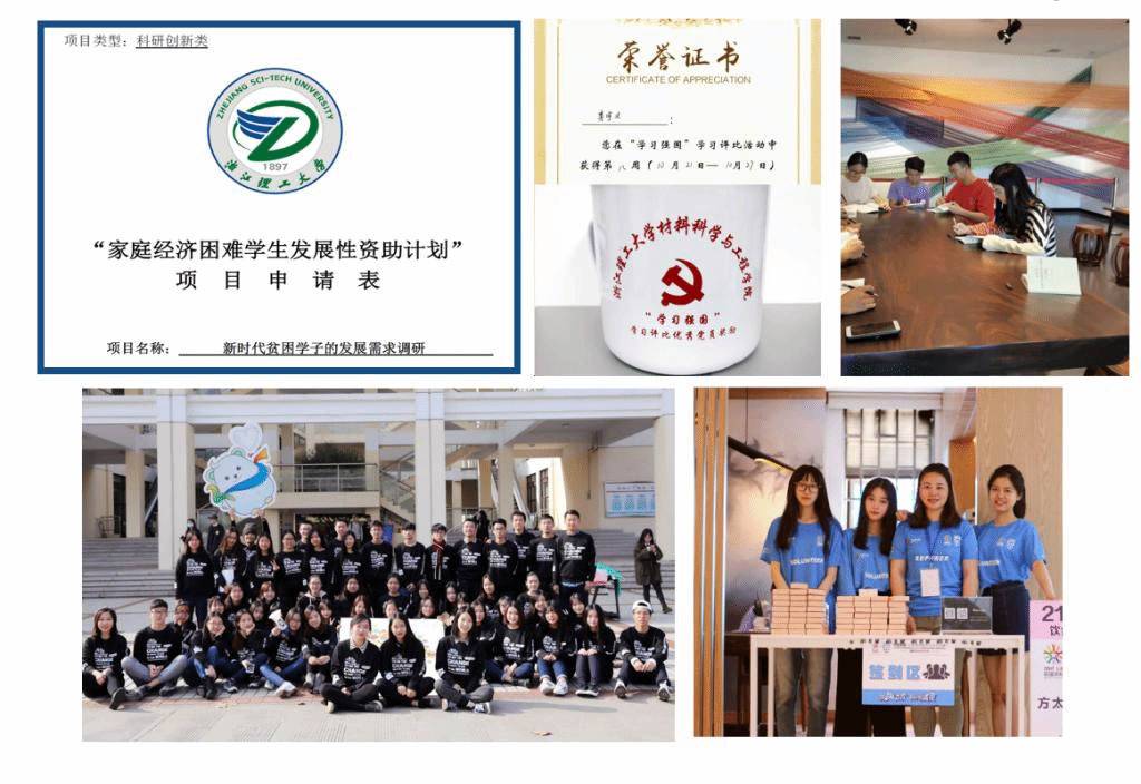 学术夏令营,浙江省全省仅我一人。并通过优异的表现斩获“优秀营员”荣誉称号,并获“免笔试免面试”直接录取攻读博士学位资格。平时热心公益志愿活动,参与社会调研贫困生资助性发展项目。