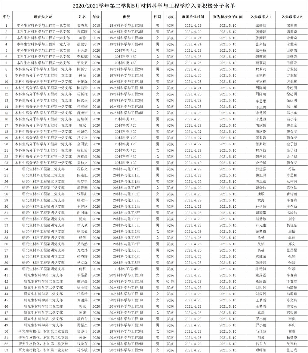 经各团支部“推优”、学院团委审核以及各党支部委员会讨论研究决定,确定史晓龙等53位同志为入党积极分子,现将名单公示如下: