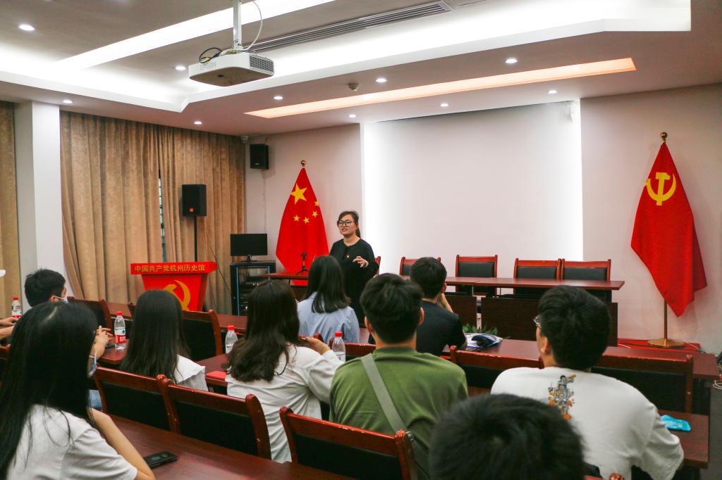 在中国共产党杭州历史馆的学习厅,辅导员张兴枝以“觉醒年代中的青春故事”为主题为学员们带来早期中国共产党人陈延年和陈乔年的悲壮故事,从他们父亲陈独秀接他们到上海勤工俭学开始,经过无数曲折经历,最终成长为马克思主义的坚定信仰者和革命牺牲者。从他们的经历中,可以看出中国共产党人在早期的环境有多么严峻。一个时代造就一个时代的英雄与传奇,我们没有他们年代的磨难与经历,但同样需要传承他们的艰苦奋斗的精神,正如我们所说的“先烈回眸应笑慰,擎旗自有后来人”。