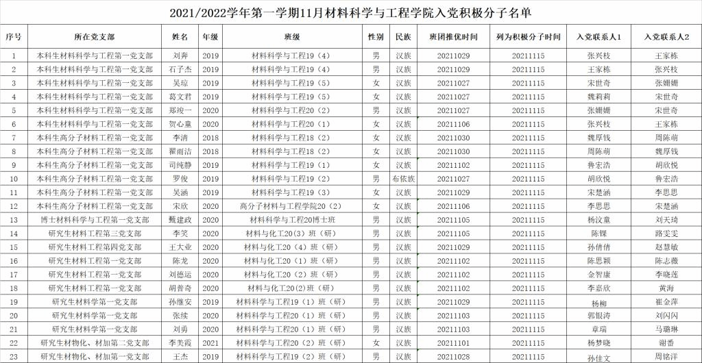 经各团支部“推优”、学院团委审核以及各党支部委员会讨论研究决定,确定刘奔等23位同志为入党积极分子,现将名单公示如下: