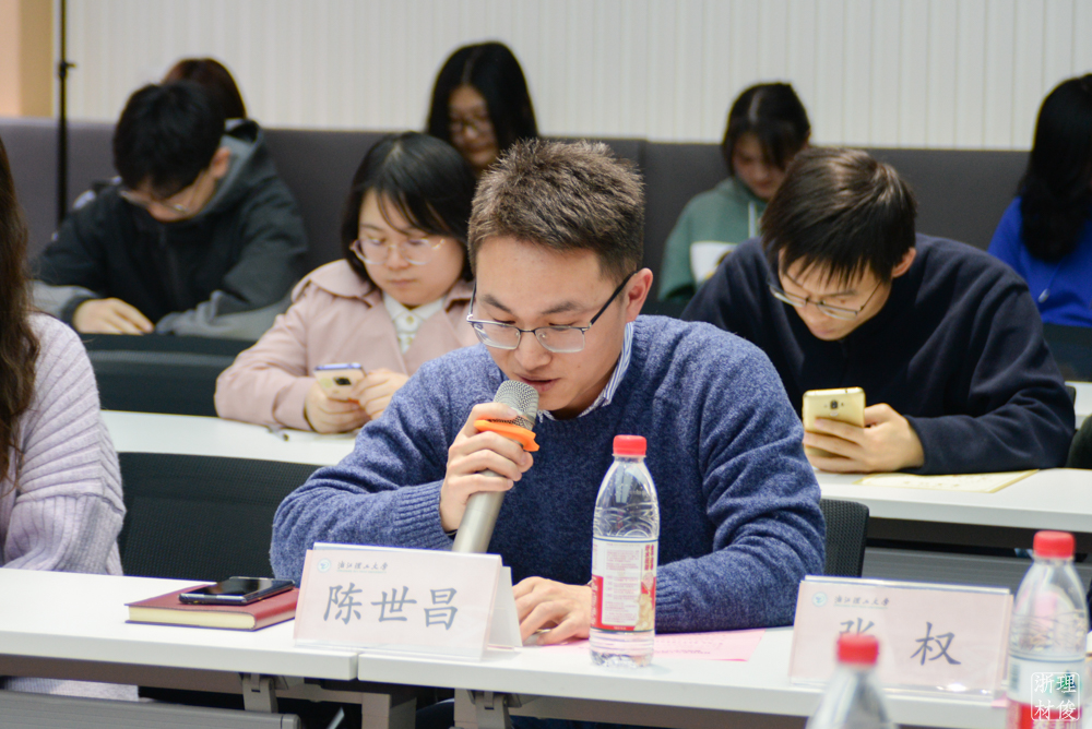 在学院党委理论学习中心组扩大会议环节,与会党员代表围绕近期《习近平在浙江》采访实录学习以及党史学习分别进行心得体会的交流分享。