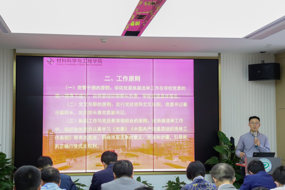 在换届选举动员会上,党委副书记周照东介绍学院党委换届选举相关工作要求,从指导思想、工作原则、任务要求、方法步骤和工作要求等五个方面进行了全面细致的介绍。要求各党支部会后做好动员和支部内的推选组织工作,学院全体党员要提高站位、精心谋划、认真落实,全力做好学院党委换届选举工作。