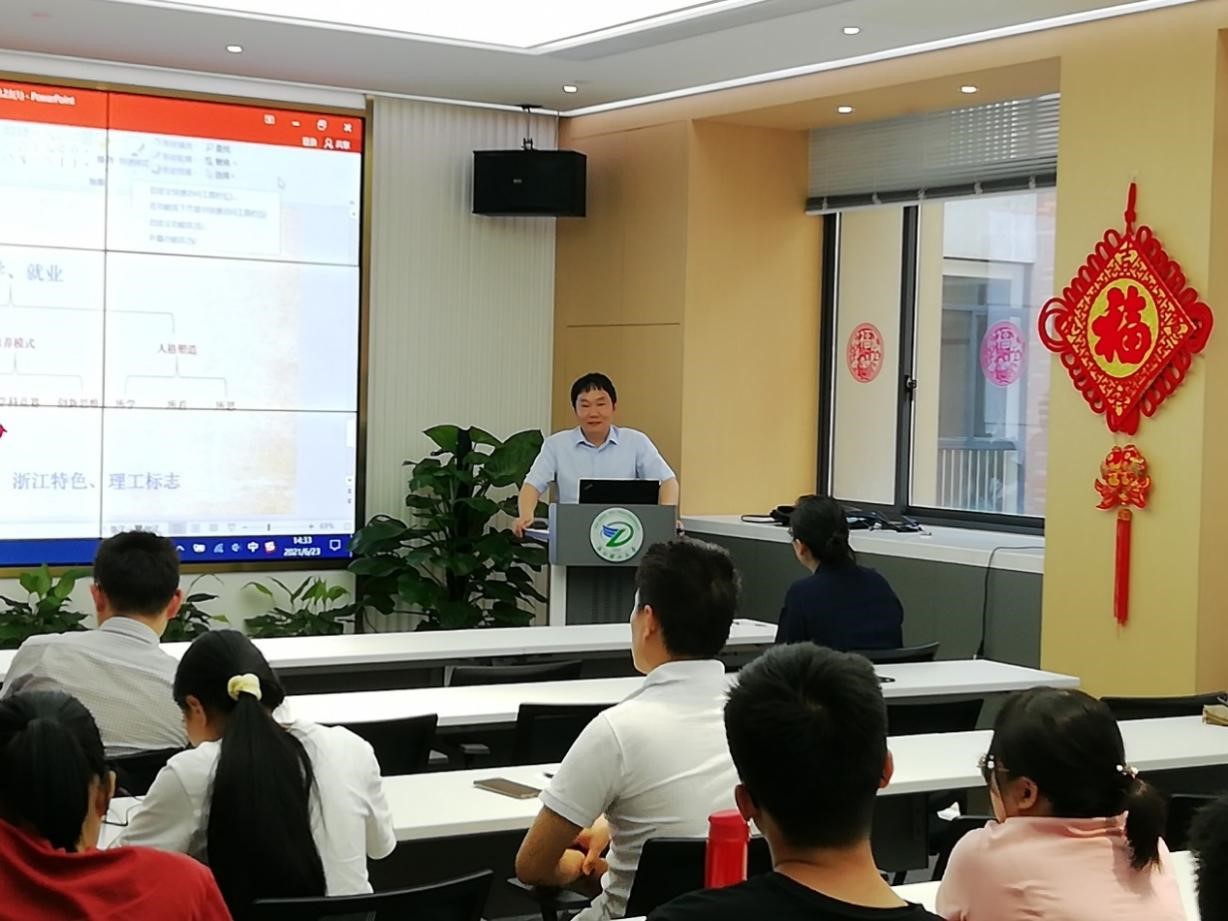 随后,董余兵、陈世昌两位老师先后围绕高分子专业发展、本科生毕业事务、实验实践课程建设等内容做报告,陈世昌并讲授了“专业发展与教师的初心使命”的专题党课。